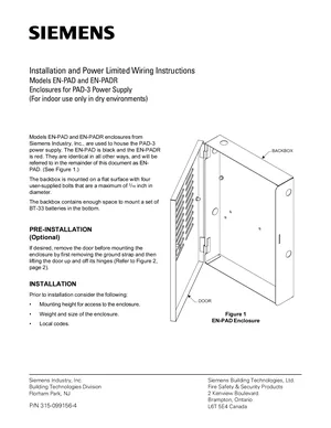 Installation Manual for the Siemens EN-PAD and EN-PADR. Document No: 315-099156-4, Rev: 4. Models EN-PAD and EN-PADR. Hardware installation, terminal connections, and environmental requirements.