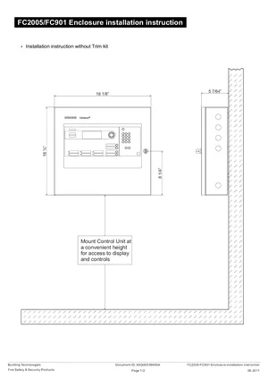 Installation Manual for the Siemens FC2005 and FC901, published in 2011. Document No: A5Q00039693A. Models FC2005 and FC901. Physical installation guide, backbox dimensions, and cabling specifications.