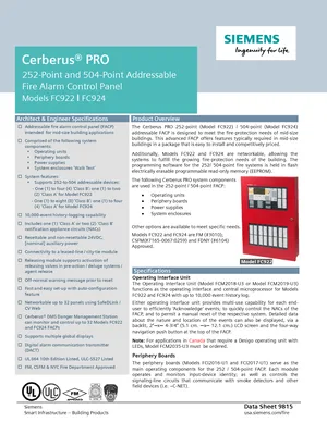 Datasheet for the Siemens FC922 and FC924, published in 2021. Document No: 9815, Rev: 8. Models FC922 and FC924. Product features, environmental operating limits, and compatibility data.