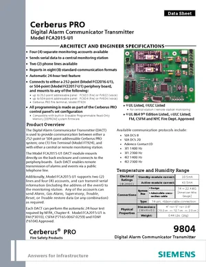 Datasheet for the Siemens FCA2015-U1, published in 2015. Document No: 9804, Rev: 5. Model FCA2015-U1. Engineering specifications, wiring diagrams, and mounting dimensions.