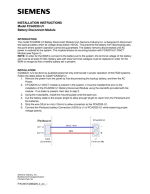 Installation Manual for the Siemens FCA2032-U1. Document No: A6V10385200, Rev: b. Model FCA2032-U1. Hardware installation, terminal connections, and environmental requirements.