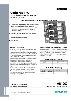Datasheet for the Siemens FCI2020-U1, published in 2013. Document No: 9810C, Rev: 2. Model FCI2020-U1. Product features, environmental operating limits, and compatibility data.