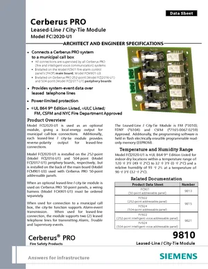 Datasheet for the Siemens FCI2020-U1, published in 2016. Document No: 9810, Rev: 3. Model FCI2020-U1. Detailed technical specifications, electrical ratings, and agency listings.