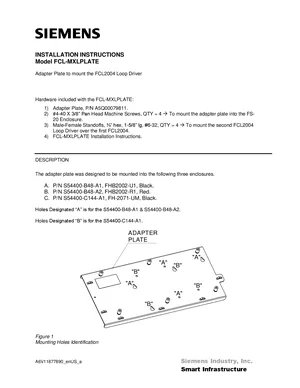 Installation Manual for the Siemens FCL-MXLPLATE. Document No: A6V11877890, Rev: a. Model FCL-MXLPLATE. Mounting instructions, wiring diagrams, and system power-up procedures.