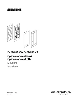 Installation Manual for the Siemens FCM2022, FCM2023, FCM2034, published in 2013. Document No: A6V10315032, Rev: b. Models FCM2022, FCM2023 and FCM2034. Hardware installation, terminal connections, and environmental requirements.