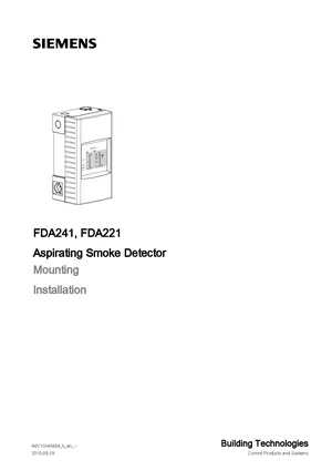 Installation Manual for the Siemens FDA241 and FDA221, published in 2015. Document No: A6V10345654, Rev: h. 10 models including FDA241, FDA221, FDCC221S and 7 additional variants. Hardware installation, terminal connections, and environmental requirements.