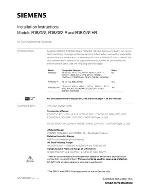 Installation Manual for the Siemens FDBZ492. Document No: A6V10336866, Rev: e. Models FDBZ492, FDBZ492-R and FDBZ492-HR. Mounting instructions, wiring diagrams, and system power-up procedures.