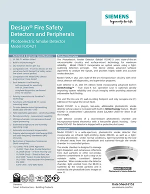 Datasheet for the Siemens FDO421, published in 2022. Document No: 6152, Rev: 12. Model FDO421. Detailed technical specifications, electrical ratings, and agency listings.