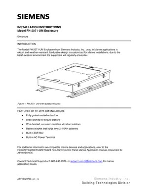 Installation Manual for the Siemens FH-2071-UM. Document No: A6V10423703, Rev: b. Model FH-2071-UM. Physical installation guide, backbox dimensions, and cabling specifications.