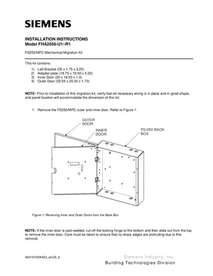 Installation Manual for the Siemens FHA2056-U1. Document No: A6V101004423, Rev: b. Models FHA2056-U1 and FHA2056-R1. Physical installation guide, backbox dimensions, and cabling specifications.