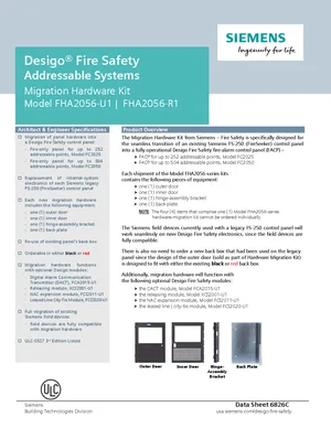 Datasheet for the Siemens FHA2056 Series (Canadian), published in 2017. Document No: 6826C. Models FHA2056-U1 and FHA2056-R1. Engineering specifications, wiring diagrams, and mounting dimensions.