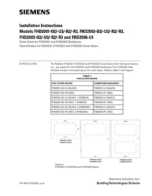 Installation Manual for the Siemens FHD2001/FHD2002/FHD2003/FHD2006. Document No: A6V10335926, Rev: a. 13 models including FHD2001-U2, FHD2001-U3, FHD2001-R2 and 10 additional variants. Mounting instructions, wiring diagrams, and system power-up procedures.