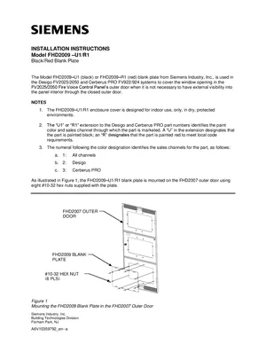 Installation Manual for the Siemens FHD2009. Document No: A6V10359792, Rev: a. Models FHD2009-U1 and FHD2009-R1. Hardware installation, terminal connections, and environmental requirements.