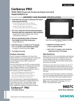 Datasheet for the Siemens FHD2012-U1 (Canadian), published in 2016. Document No: 9807C, Rev: 1. Model FHD2012-U1. Detailed technical specifications, electrical ratings, and agency listings.