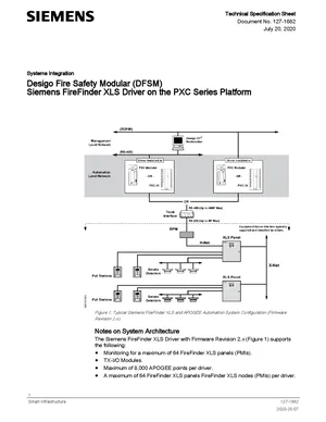 Datasheet for the Siemens FireFinder XLS Driver, published in 2020. Document No: 127-1682. Models LSM-INT-SBTXLS and LSM-ADAPT. Product features, environmental operating limits, and compatibility data.