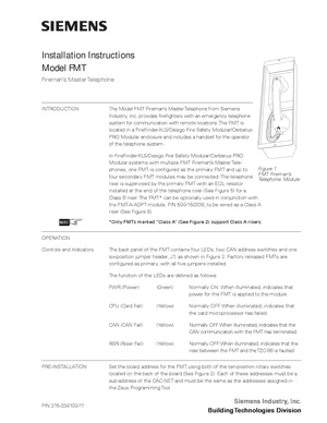 Installation Manual for the Siemens FMT. Document No: 315-034100-11. Model FMT. Hardware installation, terminal connections, and environmental requirements.