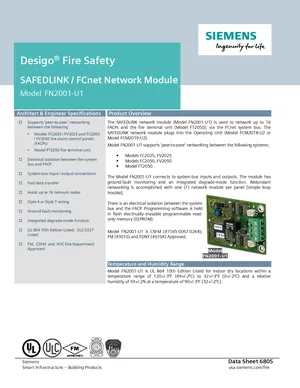 Datasheet for the Siemens FN2001-U1, published in 2021. Document No: 6805, Rev: 6. Model FN2001-U1. Engineering specifications, wiring diagrams, and mounting dimensions.