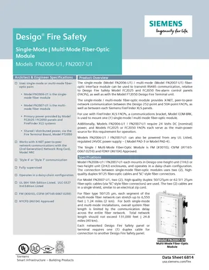 Datasheet for the Siemens FN2006-U1 and FN2007-U1, published in 2022. Document No: 6814, Rev: 6. Models FN2006-U1 and FN2007-U1. Engineering specifications, wiring diagrams, and mounting dimensions.