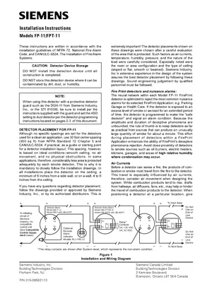 Installation Manual for the Siemens FP-11 and FPT-11. Document No: 315-095921-13, Rev: 13. Models FP-11 and FPT-11. Mounting instructions, wiring diagrams, and system power-up procedures.