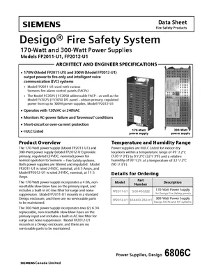 Datasheet for the Siemens FP2011-U1 and FP2012-U1, published in 2015. Document No: 6806C, Rev: 3. Models FP2011-U1 and FP2012-U1. Detailed technical specifications, electrical ratings, and agency listings.