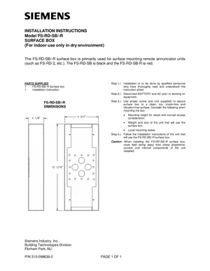 Installation Manual for the Siemens FS-RD-SB. Document No: 315-099639-2. Models FS-RD-SB and FS-RD-SB-R. Hardware installation, terminal connections, and environmental requirements.