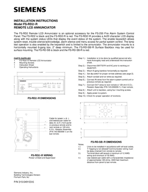 Installation Manual for the Siemens FS-RD2. Document No: 315-049103-6. Models FS-RD2 and FS-RD2-R. Physical installation guide, backbox dimensions, and cabling specifications.