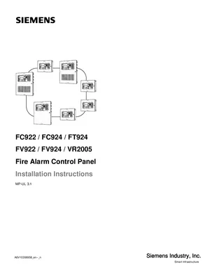 Installation Manual for the Siemens FC922, FC924, FT924, FV922, FV924, published in 2020. Document No: A6V10356958, Rev: n. 6 models including FC922, FC924, FT924 and 3 additional variants. Mounting instructions, wiring diagrams, and system power-up procedures.