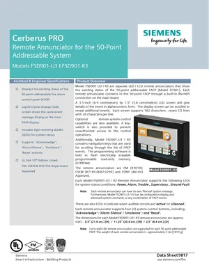 Datasheet for the Siemens FSD901-U3 and FSD901-R3, published in 2020. Document No: 9817, Rev: 4. Models FSD901-U3 and FSD901-R3. Detailed technical specifications, electrical ratings, and agency listings.