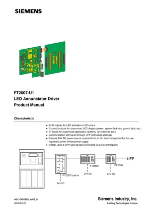 Installation Manual for the Siemens FT2007-U1, published in 2016. Document No: A6V10456389, Rev: b. Model FT2007-U1. Physical installation guide, backbox dimensions, and cabling specifications.