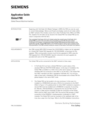 Application Guide for the Siemens Global PMI. Document No: 315-050064-1. Model Global PMI. Hardware installation, alarm/fault management, and advanced system configuration.