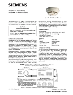 Installation Manual for the Siemens HI121. Document No: A6V10281365, Rev: a. Model HI121. Physical installation guide, backbox dimensions, and cabling specifications.
