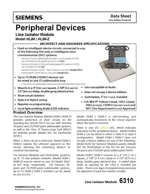 Datasheet for the Siemens HLIM, published in 2018. Document No: 6310, Rev: 4. Models HLIM and HLIM-Z. Engineering specifications, wiring diagrams, and mounting dimensions.