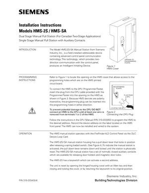 Installation Manual for the Siemens HMS-2S and HMS-SA. Document No: 315-033430-6, Rev: 6. Models HMS-2S and HMS-SA. Hardware installation, terminal connections, and environmental requirements.