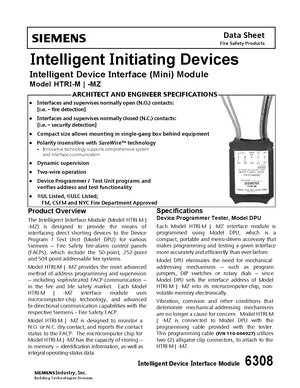 Datasheet for the Siemens HTRI-M, published in 2018. Document No: 6308, Rev: 6. Models HTRI-M and HTRI-MZ. Product features, environmental operating limits, and compatibility data.