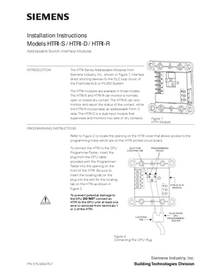 Installation Manual for the Siemens HTRI-S, HTRI-D, and HTRI-R. Document No: 315-049475-7, Rev: 7. Models HTRI-S, HTRI-D and HTRI-R. Physical installation guide, backbox dimensions, and cabling specifications.