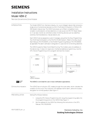 Installation Manual for the Siemens HZM-Z. Document No: A6V11208370, Rev: a. Model HZM-Z. Hardware installation, terminal connections, and environmental requirements.