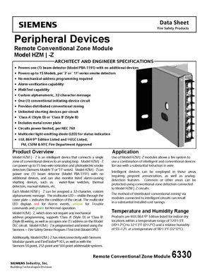 Datasheet for the Siemens HZM and HZM-Z, published in 2018. Document No: 6330, Rev: 6. 18 models including HZM, HZM-Z, PBA-1191 and 15 additional variants. Engineering specifications, wiring diagrams, and mounting dimensions.