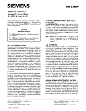 Installation Manual for the Siemens ILI-1. Document No: 315-095387-5, Rev: 5. 4 models including ILI-1, ILI-1H, ILI-1A and 1 additional variants. Mounting instructions, wiring diagrams, and system power-up procedures.