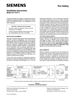 Installation Manual for the Siemens ILP-1 and ILPT-1. Document No: 315-092594-8. Models ILP-1 and ILPT-1. Mounting instructions, wiring diagrams, and system power-up procedures.
