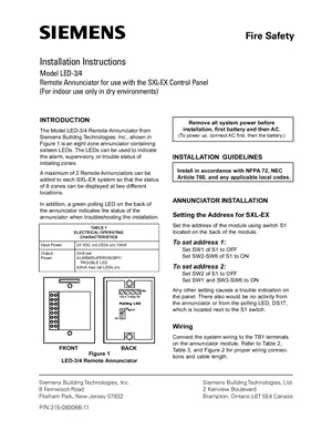 Installation Manual for the Siemens LED-3/4. Document No: 315-093066-11. Model LED-3/4. Hardware installation, terminal connections, and environmental requirements.