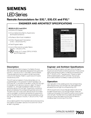 Datasheet for the Siemens LED-3 and LED-4, published in 2003. Document No: 7903. Models LED-3 and LED-4. Detailed technical specifications, electrical ratings, and agency listings.