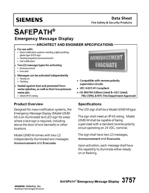 Datasheet for the Siemens LEMD-M, published in 2012. Document No: 3757, Rev: 0. Model LEMD-M. Detailed technical specifications, electrical ratings, and agency listings.