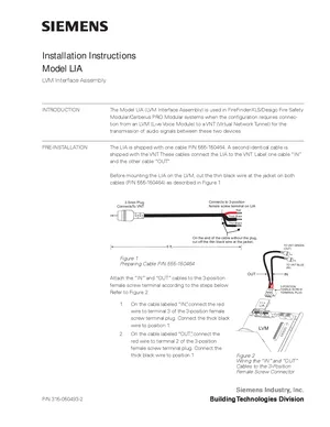 Installation Manual for the Siemens LIA. Document No: 315-050493-2. Model LIA. Physical installation guide, backbox dimensions, and cabling specifications.