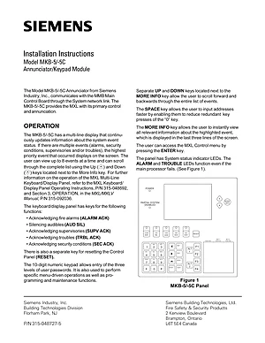 Installation Manual for the Siemens MKB-5. Document No: 315-048727-5, Rev: 5. Models MKB-5 and MKB-5C. Mounting instructions, wiring diagrams, and system power-up procedures.