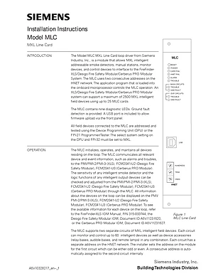 Installation Manual for the Siemens MLC. Document No: A6V10328217, Rev: f. Model MLC. Hardware installation, terminal connections, and environmental requirements.