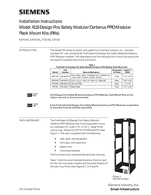 Installation Manual for the Siemens MPF-RK, MPR-RK, PTB-RK, and BP-RK. Document No: 315-034778, Rev: AH. 4 models including MPF-RK, MPR-RK, PTB-RK and 1 additional variants. Physical installation guide, backbox dimensions, and cabling specifications.