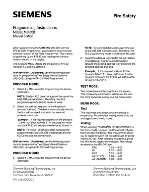 Programming Manual for the Siemens MSI-30B. Document No: 315-095129-3. Model MSI-30B. System configuration, zone programming, and cause-and-effect logic.