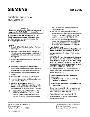 Installation Manual for the Siemens MSU-1K KIT. Document No: 315-092542-5. Model MSU-1K KIT. Hardware installation, terminal connections, and environmental requirements.