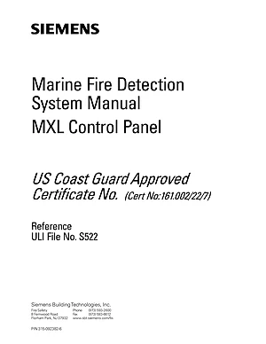 Manual for the Siemens MXL Marine Fire Detection System. Document No: 315-092382-6, Rev: 6. Model MXL. System overview, features and capabilities, and basic operation.