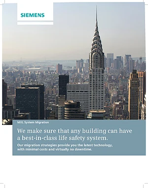 Brochure for the Siemens MXL System Migration, published in 2011. Document No: 153-FIS-101. 4 models including MXL, MXLV, FireFinder XLS and 1 additional variants. Product highlights, key features, and application overview.